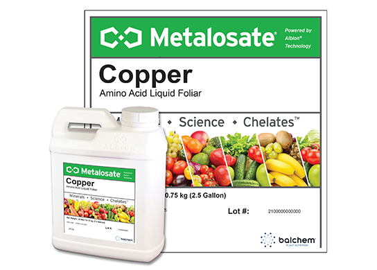 For best results, apply Metalosate® Copper liquid foliar according to recommendations based on plant tissue or soil analysis.
