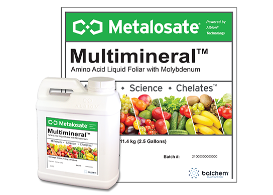 For best results, apply Metalosate® Multimineral ™ liquid foliar according to recommendations based on plant tissue or soil analysis.